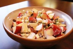 To chill salad quickly put apple salad in a large zip lock bag and place in freezer for ten minutes. Setting a timer will help you remember to remove it from your freezer.